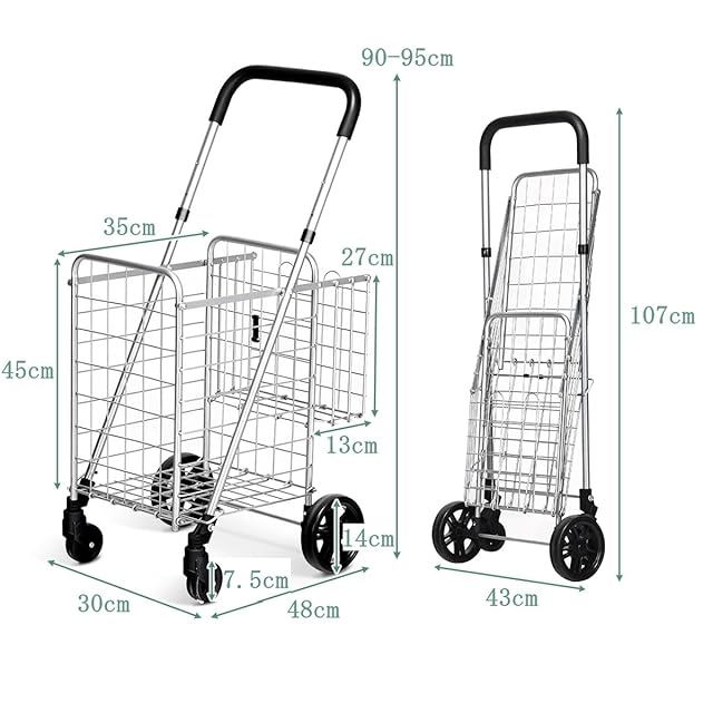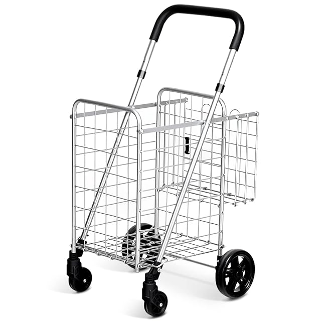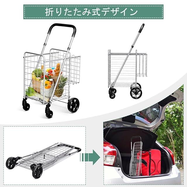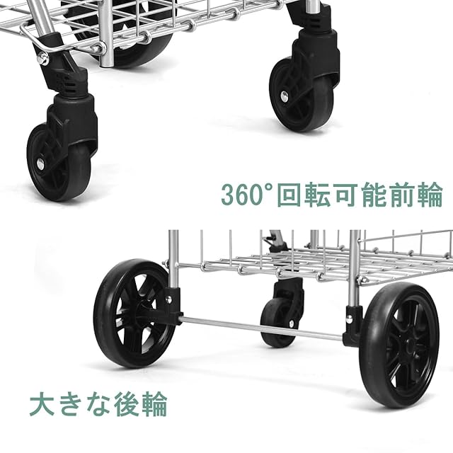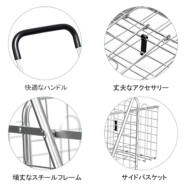 BestBuy ショッピングキャリー 買い物カート キャリーカート 4輪 折りたたみ 大容量 耐荷重20kg 軽量 台車 コンパクト カート 収納便利 多用途 買い物 洗濯 アウトドア (シルバー-S)