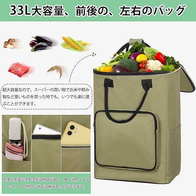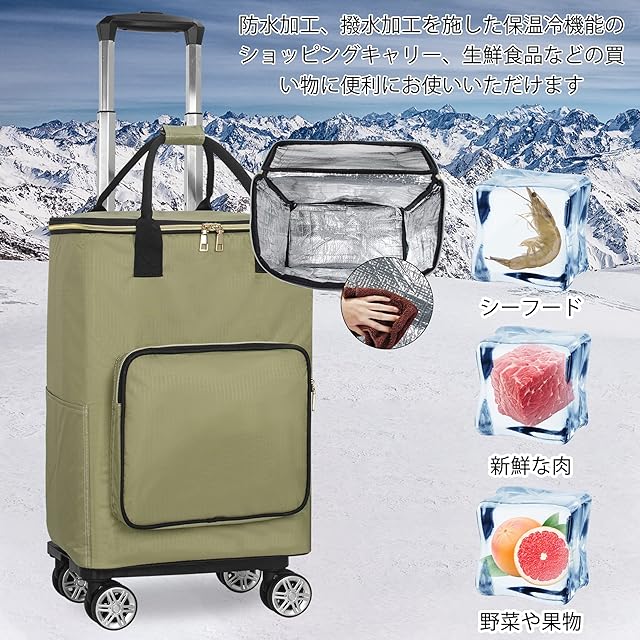 4輪 ショッピングカート ショッピングキャリー 買い物カート 横押し可能 機内持ち込み 軽量 防災グッズ 2WAY 保温保冷 キャリーバッグ (Lサイズ モスグリーンや) 旅行などに便利 買い物 カート おしゃれ 軽い