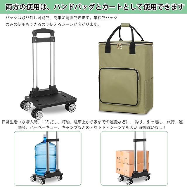 【多機能用】ショッピングカート、食料品カート、ユーティリティカート、折りたたみ式カート、およびホイール上の全体的な例外的なカートとして使用し、組み立てはほとんど必要ありません。バッグを外すと台車に変わります。50kgまで運ぶことができる軽量の台車になります。