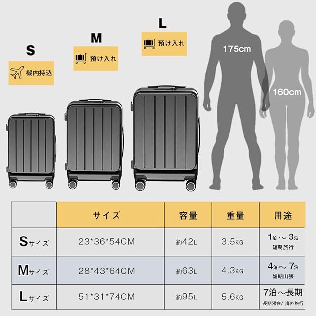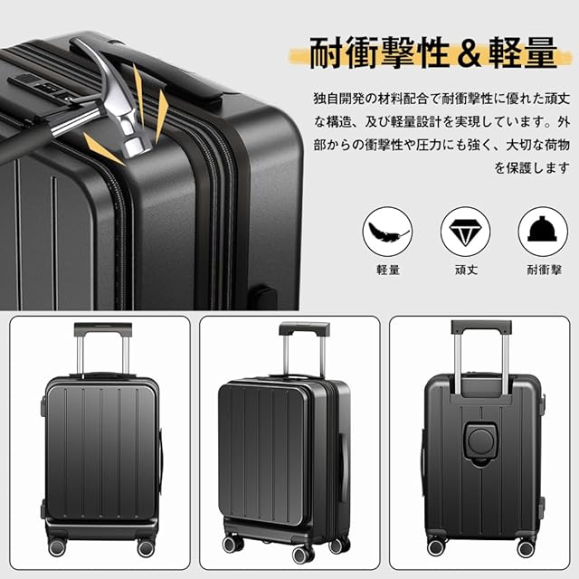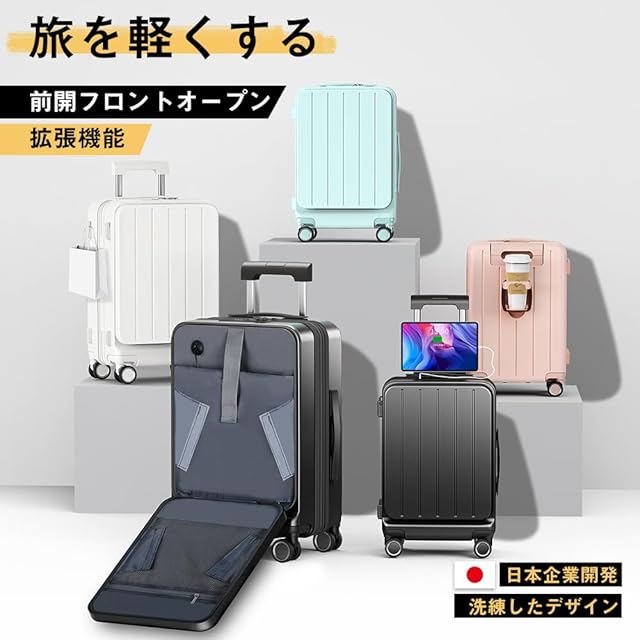 ✅【スーツケース フロントオープン構造|機内や移動中でも出し入れスムーズ】 ノートPCやタブレット、小物類を素早く取り出せるスーツケース フロントオープン設計。特に出張や空港でのセキュリティチェック時に便利です。Sサイズのスーツケース 拡張機能付きは、拡張せずに使えば機内持ち込み可能なため、国内外問わず移動時に役立ちます。スマートで機能的なキャリーケースをお探しの方におすすめです。