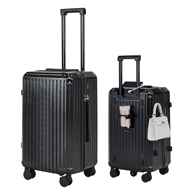 [VECELO] スーツケース キャリーケース USBポート付き 超軽量 多機能 大型 静音 アルミフレーム 耐衝撃 65L 3.4kg ブラック