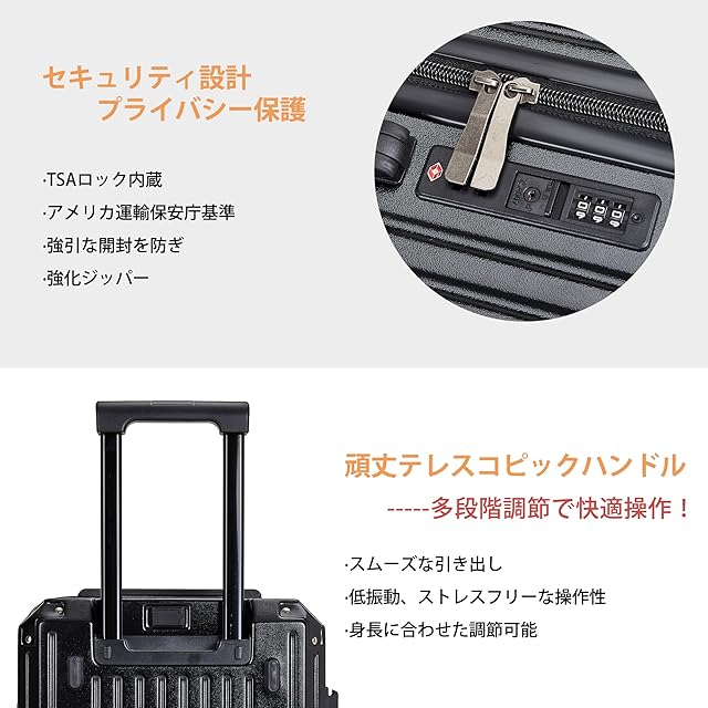 【セキュリティ設計 & プライバシー保護】TSAロック内蔵で、アメリカ運輸保安庁基準に準拠。カット防止素材&ジッパーで、強引な開封を防ぎます。強化ジッパー設計で、スムーズで耐久性抜群。機内持ち込みにも最適なセキュリティ設計で、旅の安心をサポートします。