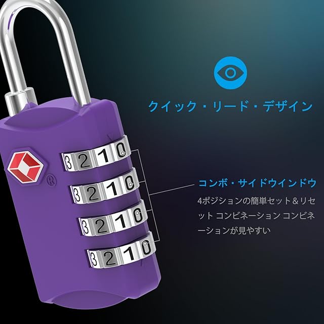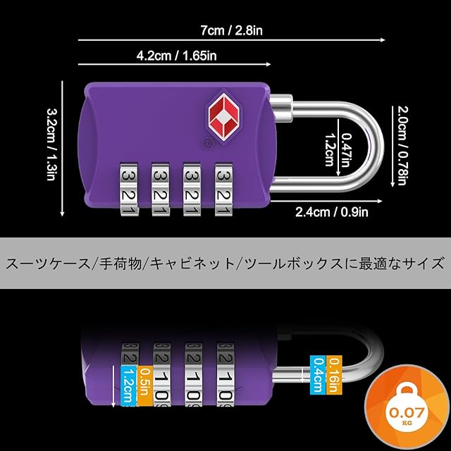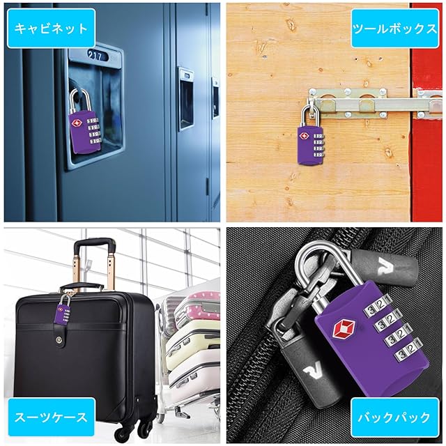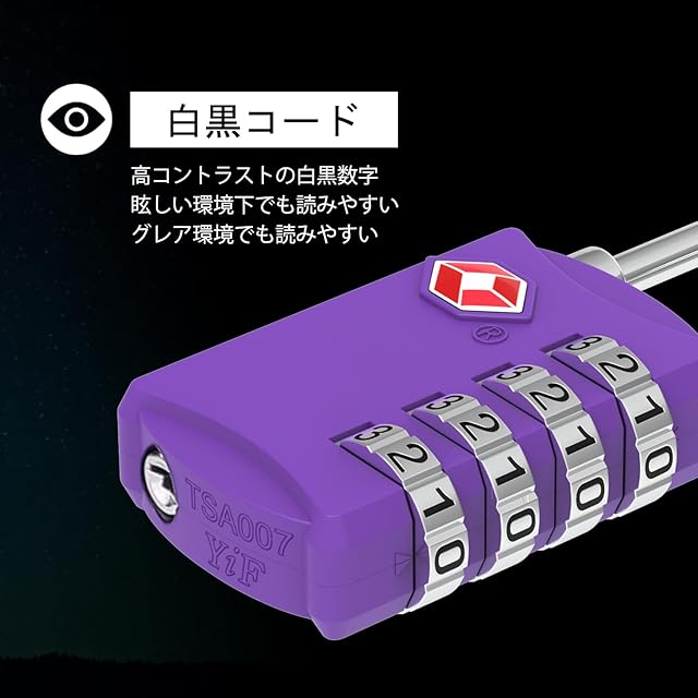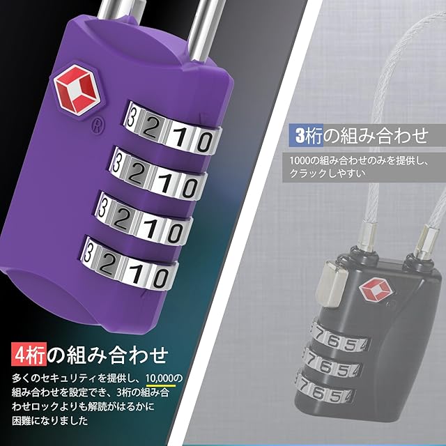 TSA 南京錠, [1個] Diyife TSA ロック 4桁ダイヤルロック スーツケース用 バッグ用, スーツケース 海外旅行用鍵 ジムロッカー荷物 ス ジッパー袋 ハンドバッグ (パープル)