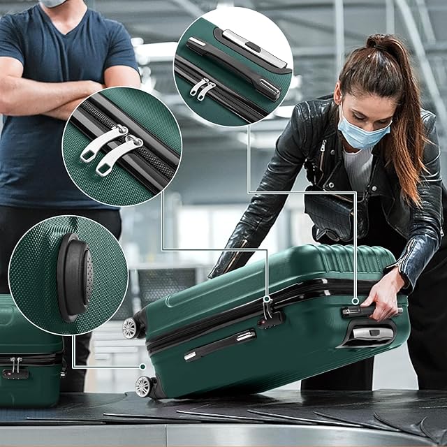 [SupTrip] スーツケース 機内持ち込み 超軽量 キャリーケース TSAロック搭載 大型 超軽量 キャリーバッグ 大容量 静音 ダブルキャスター 耐衝撃 360度回転 旅行 出張 修学 泊まる (グリーン, Mサイズ (4~6泊))