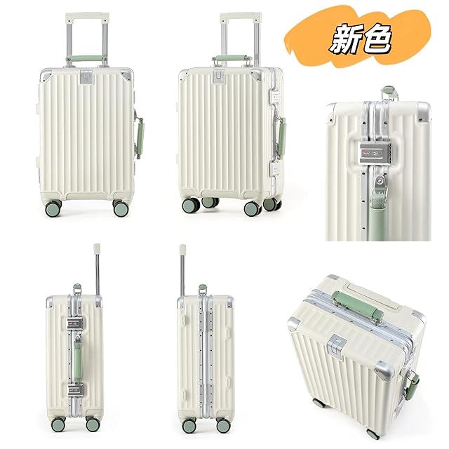 [Yuweijie] 新色!新感覚!モダン!スーツケース キャリーケース 機内持ち込み 大型 軽量アルミフレーム式 キャリーバッグ 静音 ダブルキャスター TSAロック レトロ おしゃれなハンドル 疲れない設計 入学 海外旅行出張 Mサイズ ホワイト 4-6泊 55L