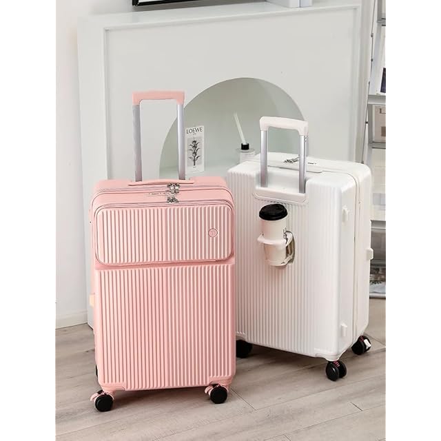 [Spyplan] キャリーケース スーツケース キャスター ストッパー付き 機内持込 フロントオープン 多機能 キャリーバッグ カップホルダー付き トランク キャスターロック付き ジッパー 超軽量 頑丈 TSAロック搭載 ブレーキ止まる360度回転 修学出張入院 2泊3日, ピンク 40l