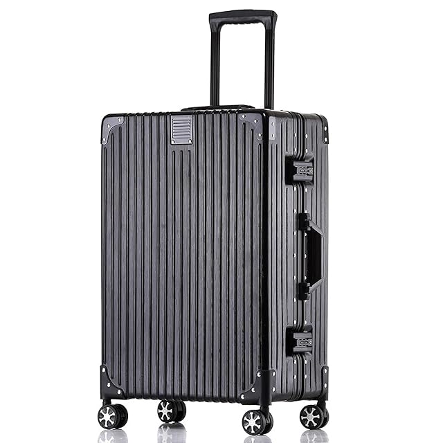 [Roamifyland] スーツケース 大型 アルミフレームタイプ キャリーケース 軽量 キャリーバッグ 静音キャスター 耐衝撃 大容量 mサイズ 24インチ トロリーケース ブラック おしゃれ TSAロック付き 旅行 5-6泊 60リットル