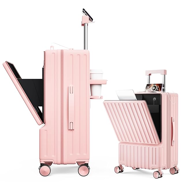 [SupTrip] スーツケース フロントオープン 多機能 キャリーケース 機内持ち込み 軽量 カップホルダー付き 隠しフック機能 キャリーバッグ USB+Type C充電機能 携帯スタンド TSAロック搭載 耐衝撃 静音 360度回転 キャリーバッグ 人気 おしゃれ 旅行 ビジネス 出張 修学 泊まる 入院 (ピンク, S(1~3泊/40L/機内持込))