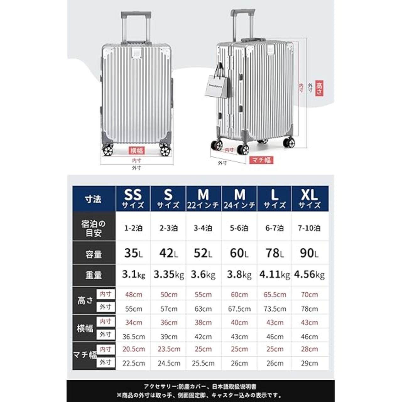 【耐久性のあるアルミフレームとサイドフック】開閉部分には強化アルミフレームを採用し、高い強度と耐久性、防水性を実現。密閉性も高く、セキュリティ面でも安心です。さらに、キャリーケース側面には手提げ袋などを掛けられる便利なフックを備えており、外出先で増えがちな荷物も手軽にまとめられます。