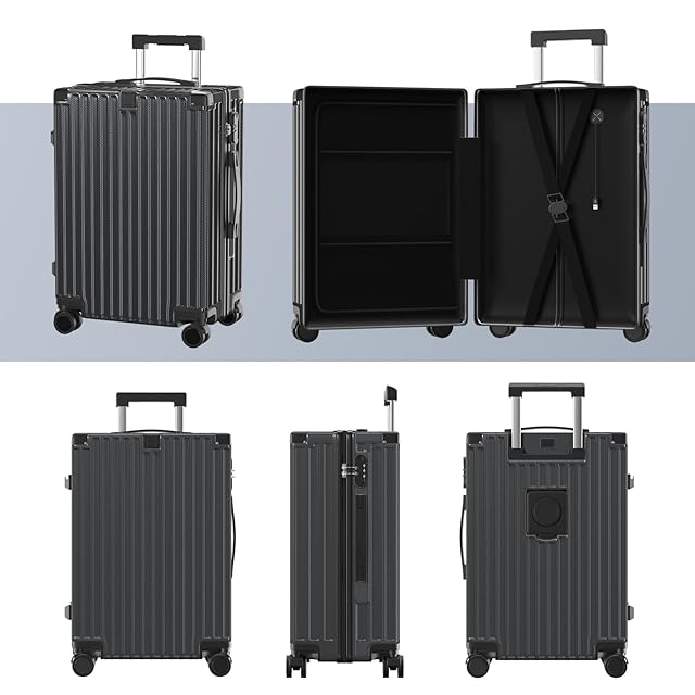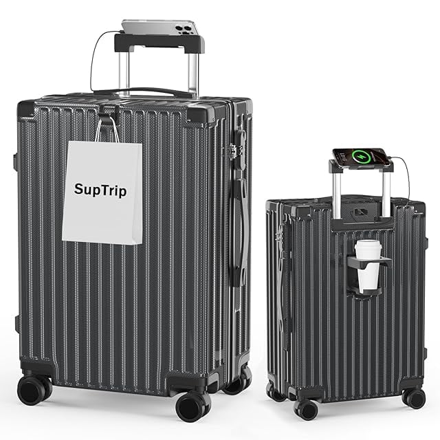 [SupTrip] スーツケース 機内持ち込み 超軽量 キャリーケース 多機能 キャリーバッグ USBポート付き カップホルダー付き 隠しフック機能 USB+Type C充電機能 大型 静音 ダブルキャスター 耐衝撃 360度回転 軽量 ビジネス 修学 泊まる 旅行 出張 (グレー, M (4~6泊/65L))