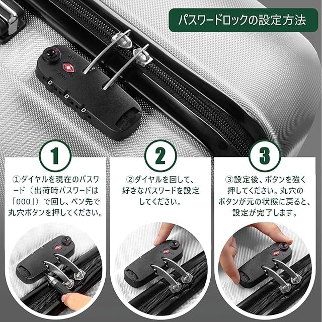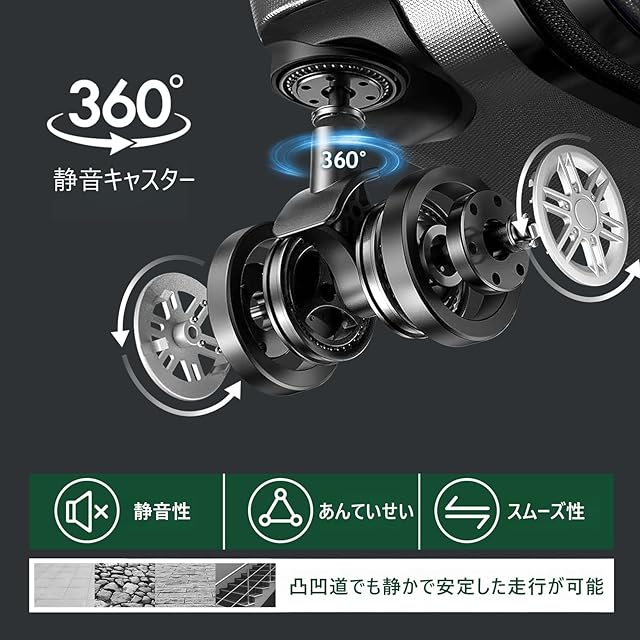 【TSAローク搭載&360°静音キャスター】スーツケースにはTSA税関ロックが装備されており、国際保安検査基準に適合しており、税関検査を容易にするとともに、物品の安全を確保することができます。また、高弾性TPE衝撃軽減素材のキャスターを採用し、より静かで耐摩耗性も向上しています。