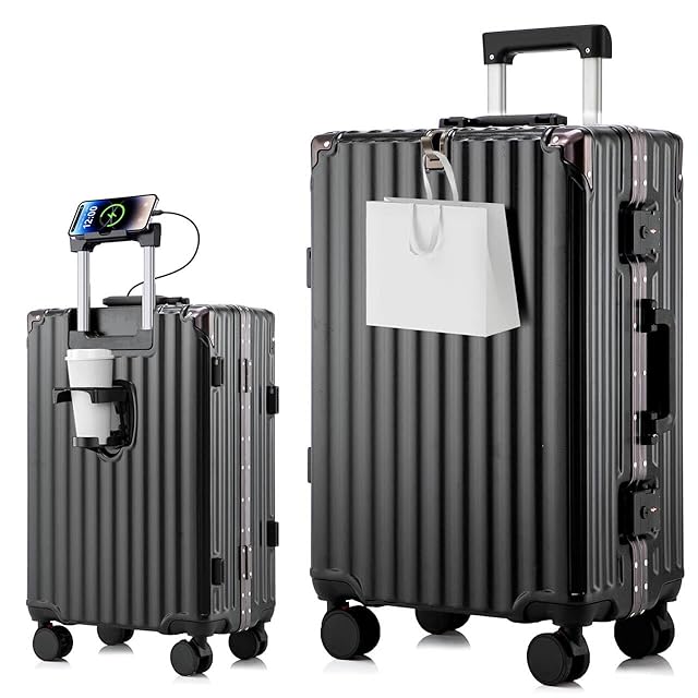 [Tatsui] スーツケース 機内持ち込み キャリーケース アルミ フレーム タイプ 大容量 ストッパー付き 耐衝撃 USBポート TSAローク搭載 カップホルダー付き 隠しフック機能 便利グッズ キャリー ケース 軽量 静音 大型 360度回転キャスター キャリーバッグ ビジネス 出張 旅行
