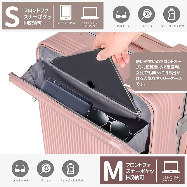 [Spyplan] キャリーケース フロントオープン キャスター ストッパー付き スーツケース 機内持込 可愛い 多機能 トップオープンパソコンケース アルミフレーム キャリーバッグ カップホルダー付き キャスターロック付き 超軽量 トランク 人気 頑丈 TSAロック搭載 ブレーキ止まる360度回転 修学出張入院 5泊、6泊、7泊 Lサイズ,78リットル 長期滞在用