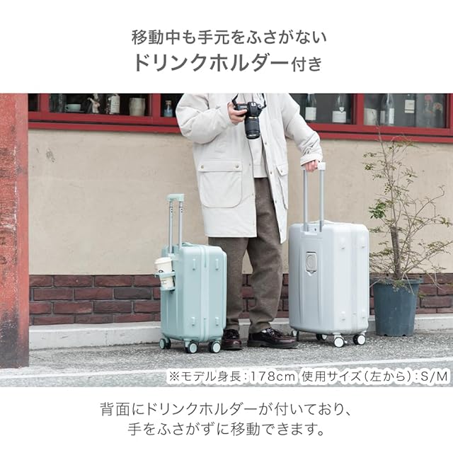[タンスのゲン] ひるおびで紹介 キャリーケース 多機能 フロントオープン 【Sサイズ 機内持ち込み 大容量 32L 2泊3日】 小型 USBポート TSAロック カップホルダー 軽量 頑丈 スーツケース 84200000(104501)