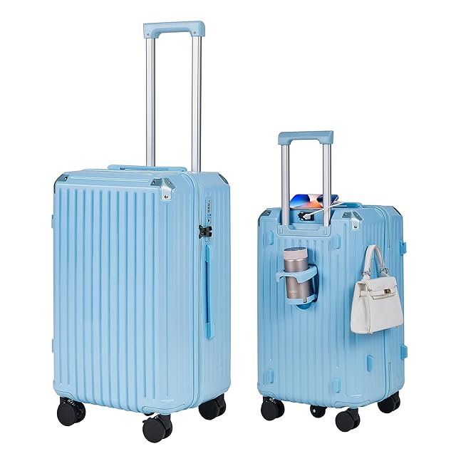 [VECELO] スーツケース キャリーケース USBポート付き 超軽量 多機能 大型 静音 アルミフレーム 耐衝撃 35L 3kg ブルー