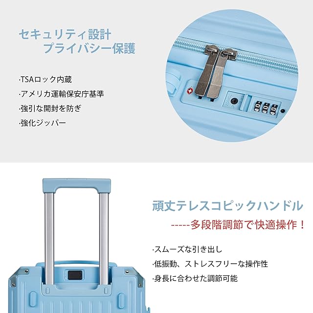 【セキュリティ設計 & プライバシー保護】TSAロック内蔵で、アメリカ運輸保安庁基準に準拠。カット防止素材&ジッパーで、強引な開封を防ぎます。強化ジッパー設計で、スムーズで耐久性抜群。機内持ち込みにも最適なセキュリティ設計で、旅の安心をサポートします。