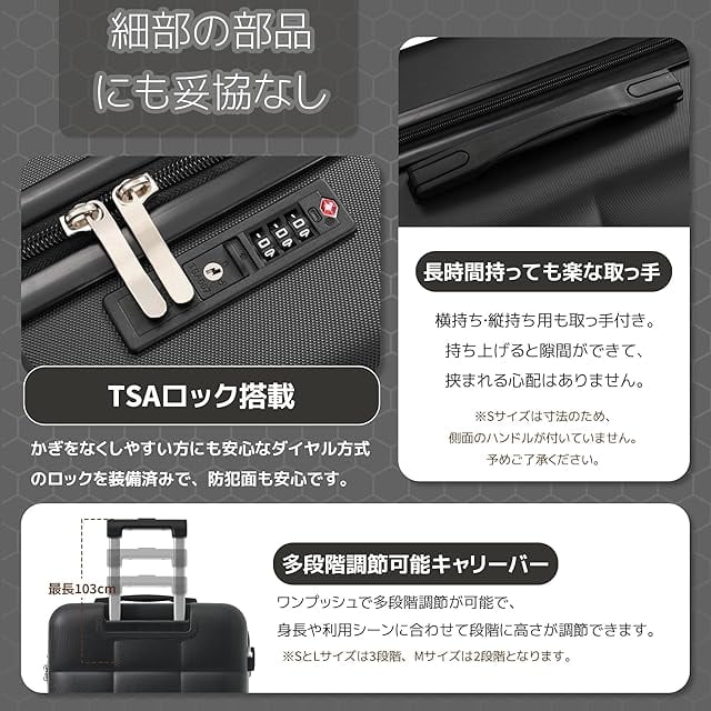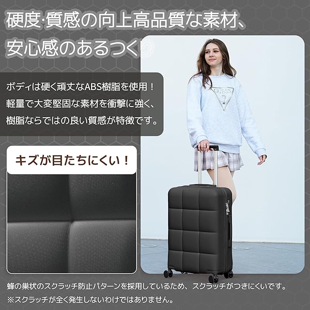 【新登場・高品質】スースケースのボディはABS樹脂で作られ、耐衝撃性に優れています。蜂の巣状のスクラッチ防止パターンを採用しているため、本来立体的なデザインに立体感を持たせるとともに、ボディーのスクラッチ防止特性を向上させています。美観と実用性を併せ持ち、バッグの耐摩耗性がより向上され、もっと頑丈になります。