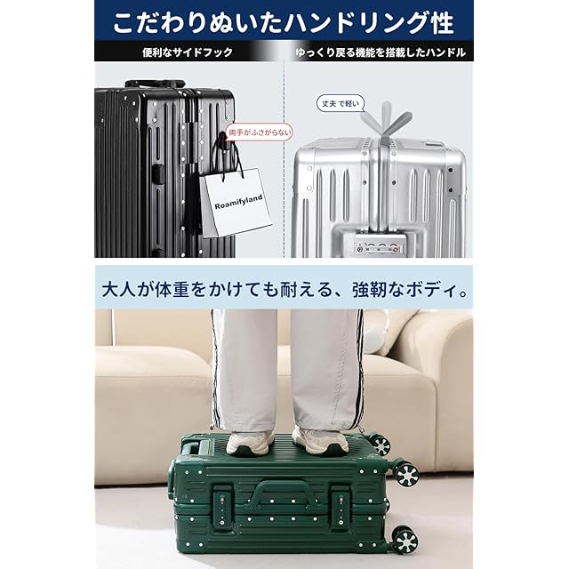 [Roamifyland] スーツケース 大型 アルミフレームタイプ キャリーケース 軽量 キャリーバッグ 静音キャスター 耐衝撃 大容量 Lサイズ トロリーケース ブラック おしゃれ TSAロック付き 旅行 78リットル