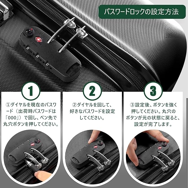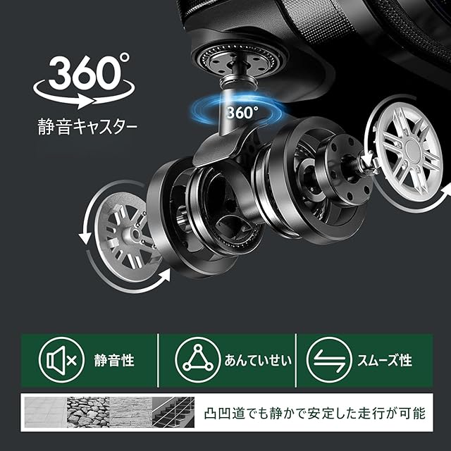 【TSAローク搭載&360°静音キャスター】スーツケースにはTSA税関ロックが装備されており、国際保安検査基準に適合しており、税関検査を容易にするとともに、物品の安全を確保することができます。また、高弾性TPE衝撃軽減素材のキャスターを採用し、より静かで耐摩耗性も向上しています。