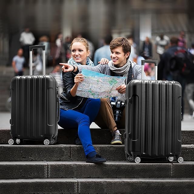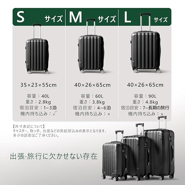 [SupTrip] スーツケース 機内持ち込み 超軽量 キャリーケース TSAロック搭載 大型 超軽量 キャリーバッグ 大容量 静音 ダブルキャスター 耐衝撃 360度回転 旅行 出張 修学 泊まる (ブラック, Mサイズ (4~6泊))