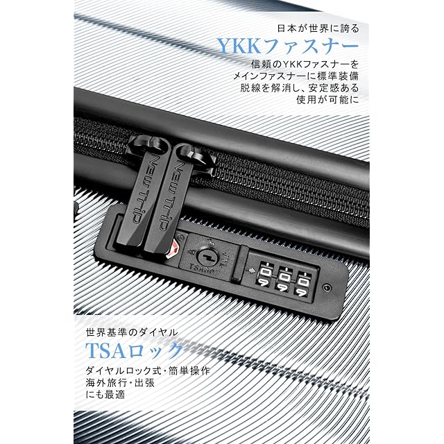 【安心の日本ブランド&1年間】New Tripはあらゆるシーンで安心してご利用いただける日本のスーツケースブランドです。高品質にこだわり、アフターサービスにも対応しています。通常使用で1年以内に不具合が発生した場合、無料で修理また交換させていただきます。万が一、初期不良があった場合は迅速に新品交換させていただきます。