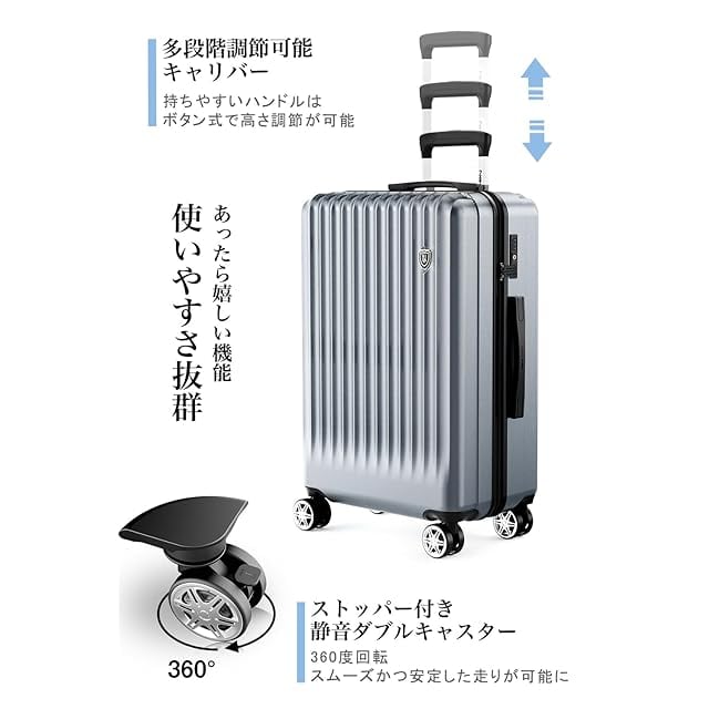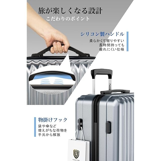 [New Trip] スーツケース キャリーケース ストッパー付き 機内持ち込み 軽量 大型 S/M/Lサイズ キャリーバッグ 耐衝撃 大容量 ファスナータイプ 静音 ダブルキャスター TSAロック 海外 旅行 ビジネス 出張 (シルバー、Lサイズ /7泊~長期旅行 /95L)