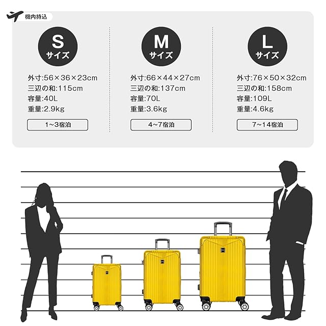 color:イエロー size:Lサイズ (8泊~長期旅行):