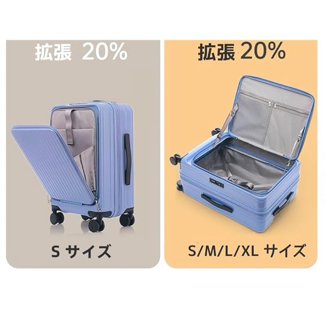 [Yuweijie] スーツケース キャリーケース トップオープン 拡張機能付き 機内持ち込み フロントオープン 大容量 超軽量 ファスナータイプ カップホルダー付き ポリカーボネート素材 TSAロック キャリーバッグ ラップトップコンパートメント ビジネス 出張 1-3泊 39l~47リットル