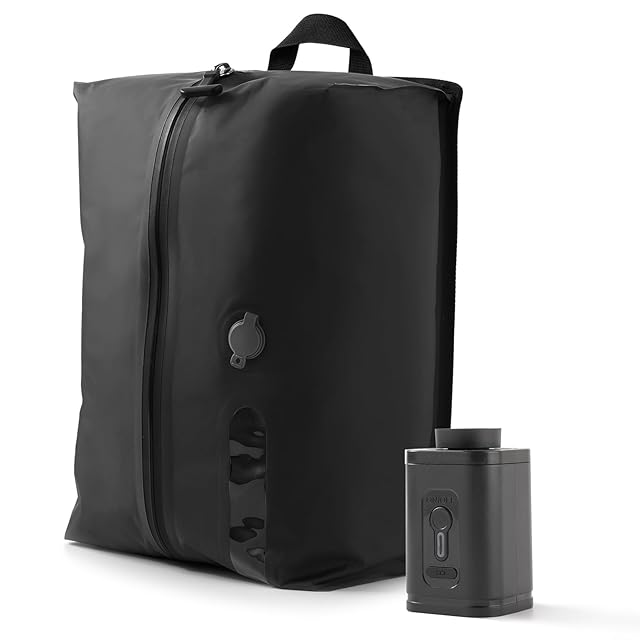 TREXPURE 旅行用圧縮袋 圧縮トラベルバッグ トラベルポーチ 圧縮バッグ 吸引機 電動 透明窓 圧縮 旅行 便利グッズ 出張 衣類収納 圧縮袋 ナイロン 大きめ 防水 防塵 吊り下げ 省スペース ポンプ付き (ブラック/1袋(ポンプ付き))