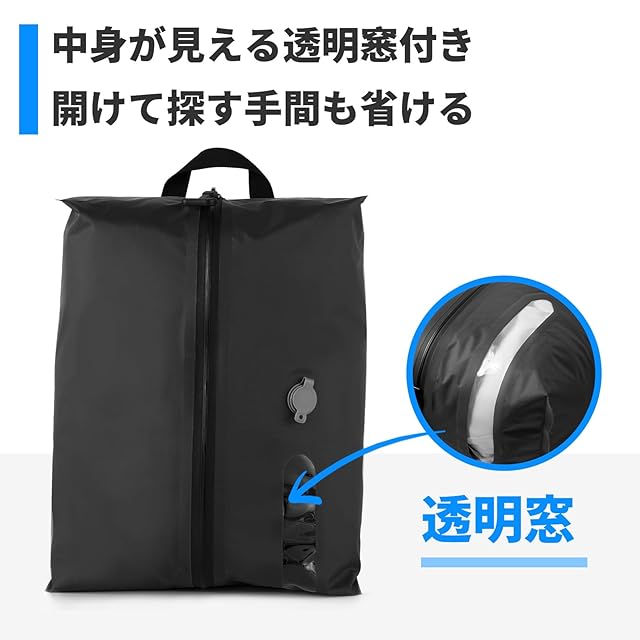 【透明な窓付き袋の新しいデザイン】圧縮トラベルバッグの透明なウィンドウ付きポケットは、中身を瞬時に確認できるように設計されています。衣類、証明書、どんな物でもすぐに見つけ出し、欲しい物を素早く手に入れることができ、時間を大幅に節約します。独自開発の透視素材と耐衝撃性ナイロン素材を組み合わせることで、収納物の保護と確認の両立を実現しています。
