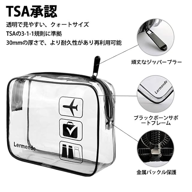 TSA認証:透明なトラベルポーチはTSAの3-1-1規則に厳密に従い、スムーズに空港のセキュリティチェックを通過でき、旅行中の時間と手間を節約します