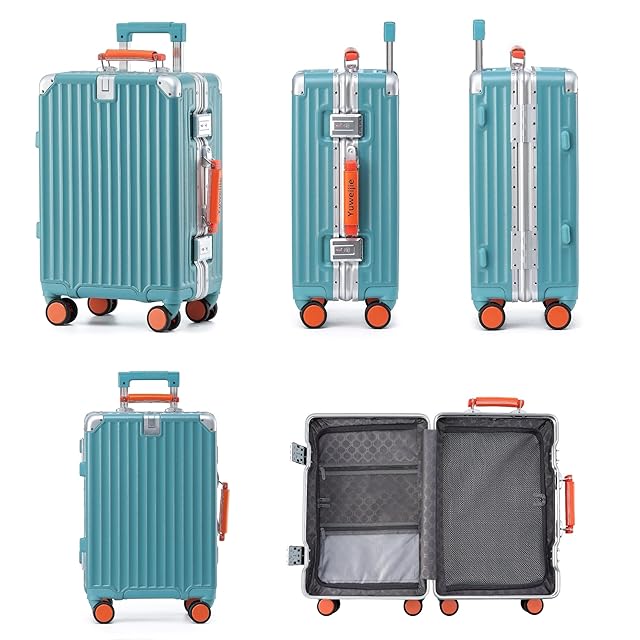 [Yuweijie] 新感覚!モダン!スーツケース キャリーケース 機内持ち込み 大型 軽量アルミフレーム式 キャリーバッグ 静音 ダブルキャスター TSAロック レトロ おしゃれなハンドル 疲れない設計 入学 海外旅行出張 Sサイズ ブルー 1-3泊 40L
