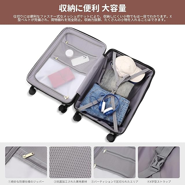 [Spyplan] スーツケース 機内持ち込み 拡張機能付き 超軽量 大容量 キャリーケース 可愛い キャリーバッグ 大型 耐衝撃 ジッパータイプ 静音 ダブルキャスター 360度回転 TSAロック搭載 人気 旅行 ビジネス 出張 Sサイズ 2泊3日 フルブラックミラー