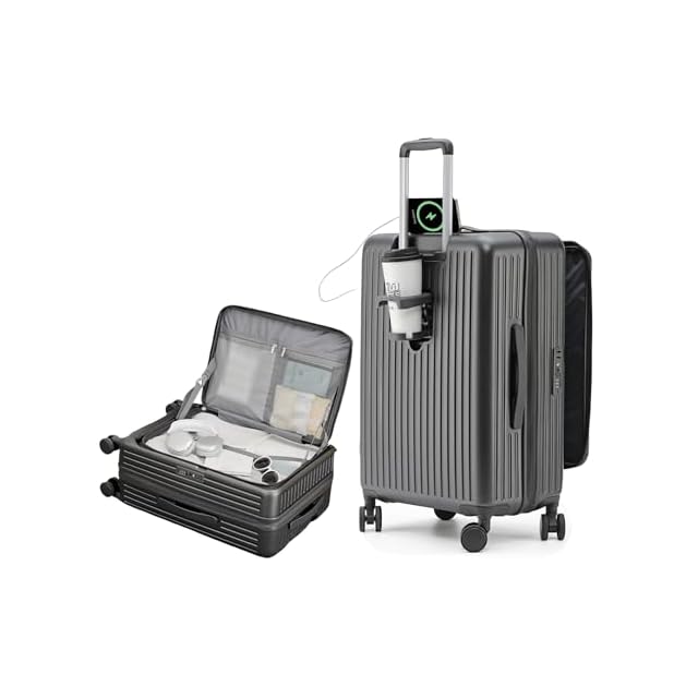 [SupTrip] スーツケース キャリーケース 多機能 片開き 拡張機能付き 機内持ち込み キャリーバッグ フロントオープン USBポート付き カップホルダー付き 隠しフック機能 超軽量 耐衝撃 静音 360度回転 大容量 TSAロック搭載 旅行 ビジネス 出張 (グレー, S(1~3泊/40L/機内持込))