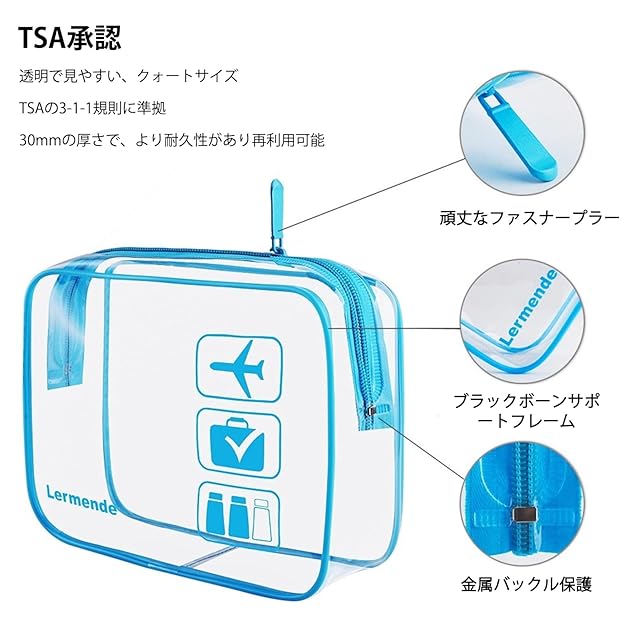 TSA認証:透明なトラベルポーチはTSAの3-1-1規則に厳密に従い、スムーズに空港のセキュリティチェックを通過でき、旅行中の時間と手間を節約します