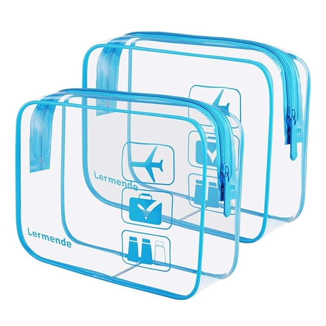 Lermende 2個 トイレタリーバッグ TSA承認済み 洗面用具 ポーチ 透明化粧ポーチ 旅行用ポーチ旅行用化粧品メイクアップバッグ 男女兼用 - ブルー