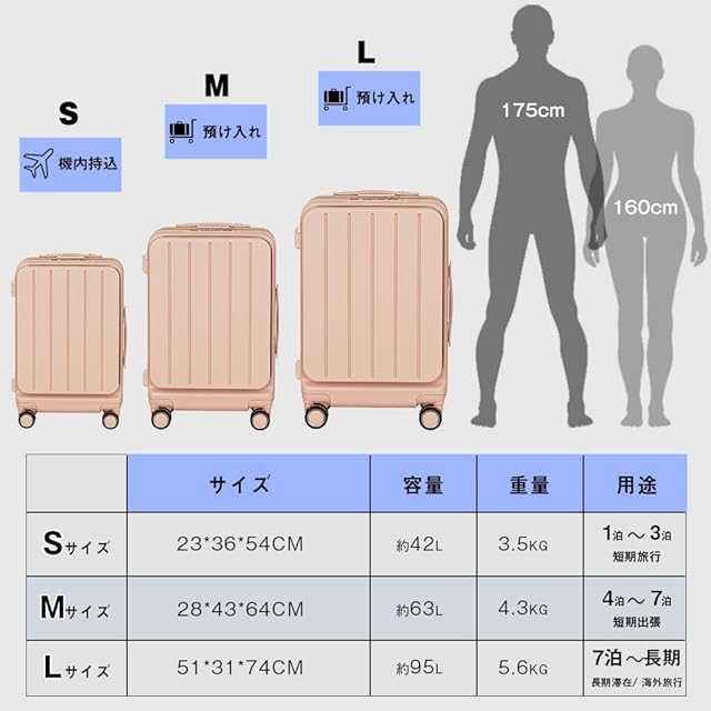 ✅【スーツケース フロントオープンで取り出し簡単|Sサイズ機内持ち込み対応】 PCや書類、小物類をスムーズに取り出せるスーツケース フロントオープン構造を採用。移動中や空港のセキュリティチェック時でもすぐにアクセス可能。スーツケース 拡張機能付きながら、コンパクトで機内持ち込みサイズにも対応。仕事用のキャリーケースとしても最適で、急ぎのビジネス対応や通勤にも使える多機能キャリーバッグです。要注意:拡張前のSサイズは機内持ち込み対応(※航空会社によって異なる)