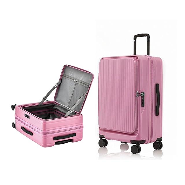 [Yuweijie] スーツケース キャリーケース 片開き 拡張機能付き フロントオープン 大容量 機内持ち込み 超軽量 ファスナータイプ カップホルダー付き TSAロック キャリーバッグ 横開き ビジネス 旅行 出張 70~85リットル Lサイズ 7泊 ローズピンク