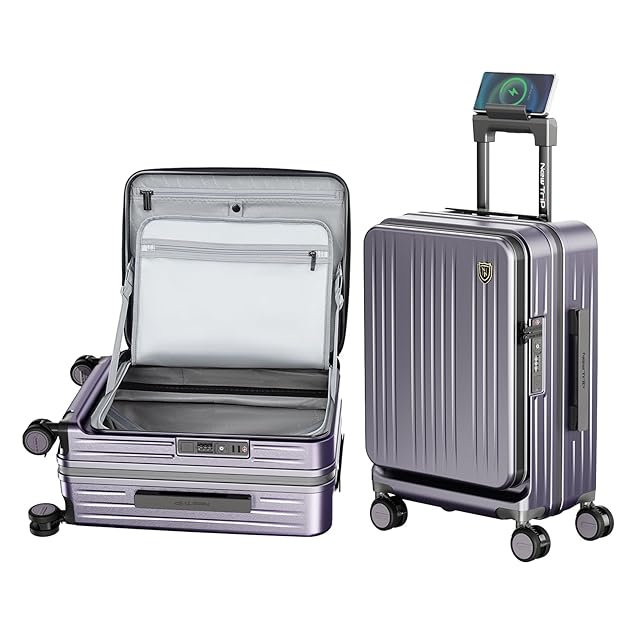 [New Trip] スーツケース キャリーケース フロントオーポン 片開き PC100% 拡張機能付き 機内持ち込み キャリーバッグ USBポート付き ストッパー付き スマホスタンド 隠しフック 軽量 大型 S/M/Lサイズ 耐衝撃 ファスナータイプ 静音ダブルキャスター TSAロック 海外 旅行 ビジネス 出張 (ダークパープル、Sサイズ/機内持ち込み/1~3泊)
