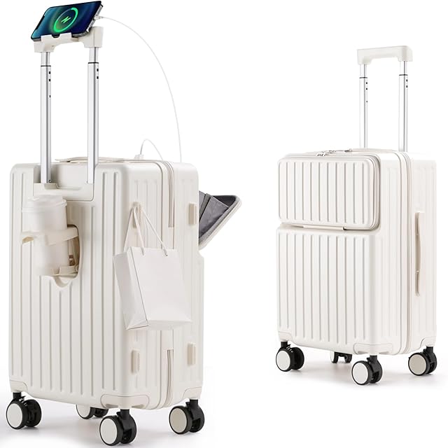 [Mularda] スーツケース フロントオープン スーツケース 機内持ち込み 多機能キャリーケース 超軽量 耐衝撃 前開き キャリーバッグ USBポート付き 360度回転 ダブルキャスター 軽量 旅行 ビジネス 出張 ホワイト