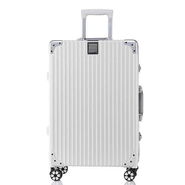 [Yuweijie] スーツケース 機内持ち込み アルミフレーム キャリー ケース 預け入れスーツケース 大型トロリーケース 軽量キャリーバッグ 静音ダブルキャスター 耐衝撃 旅行 ビジネス 出張 tsaロック付 保護カバー付き,ホワイト SSサイズ 1泊2日 機内持ち込み可,三辺の和<115cm