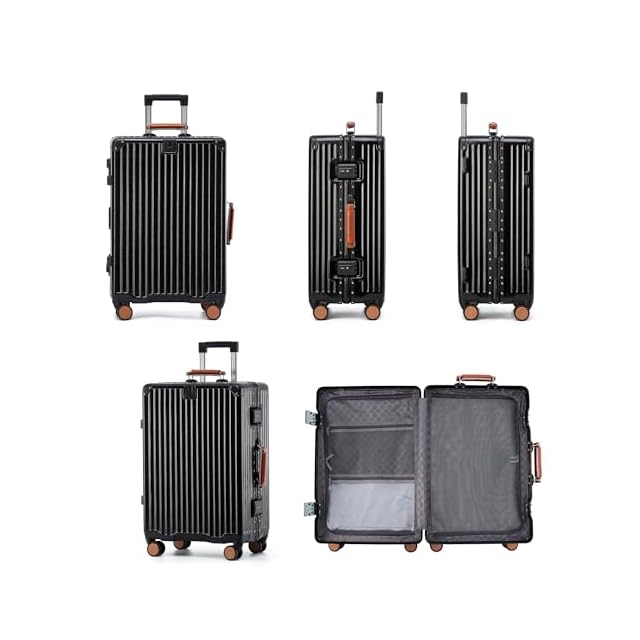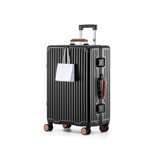 [Yuweijie] 新感覚!モダン!スーツケース キャリーケース 機内持ち込み 大型 軽量アルミフレーム式 キャリーバッグ 静音 ダブルキャスター TSAロック レトロ おしゃれなハンドル 疲れない設計 入学 海外旅行出張 Sサイズ ブラック 1-3泊 40L