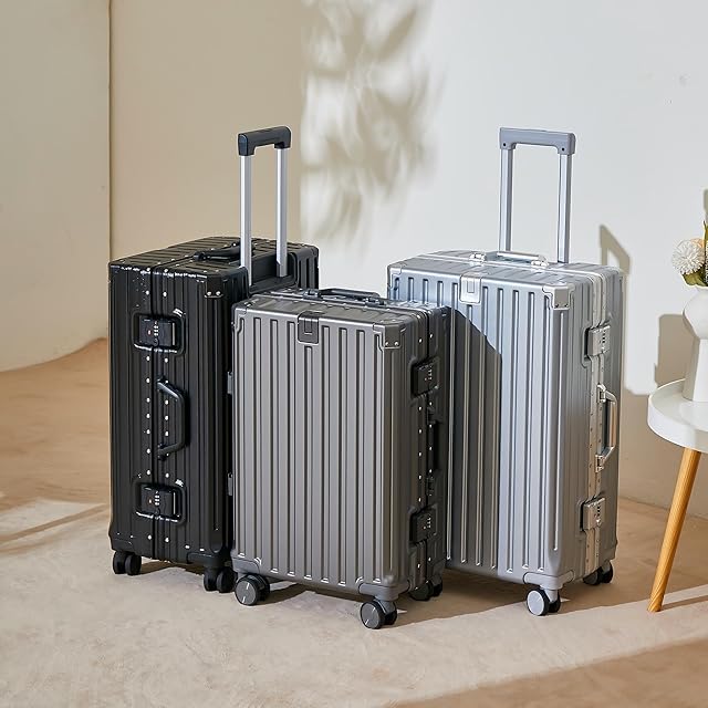 [Yuweijie] スーツケース アルミフレームタイプ キャリーケース 機内持込可 s/m/l/xlサイズ 5泊6日 バッグかけフック付き 多機能 キャリーバッグ カップホルダー付き スマホホルダー付き 軽量大型 大容量 耐衝撃 人気 おしゃれ 静音 360度回転 ダブルキャスター 修学旅行 国内旅行 (Lサイズ 4-6泊 70リットル)