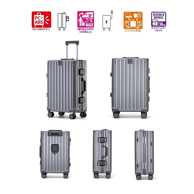 【7月新登場&頑丈なボディ】2024神コスパモデル新登場!スーツケースはABS樹脂とPC混合材料を使用して製造されており、ABSとPCの特性を兼ね備えています。飽きのこないデザイン性で旅行、ビジネスとシーンを選ばず使用可能。ダメージを受けやすいコーナーはリベット付きでしっかりと衝撃をガードします。【圧倒的な軽さ】女性でも片手で楽々持ち運び可能!新素材採用で従来品より30%軽量化し、航空会社の手荷物重量制限の悩みを解消。