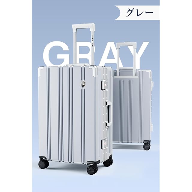[New Trip] スーツケース キャリーケース アルミフレームタイプ 静音キャスター&ストッパー付き PC100%素材 耐衝撃 TSAロック 隠しフック ビジネス 出張 旅行 キャリーバッグ Mサイズ 4~7泊 グレー色