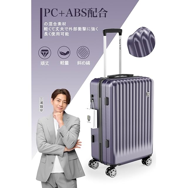 【高品質なボディ&信頼のYKKファスナー】ABS樹脂は軽くて弾力性と割れに強く、PC(ポリカーボネート)樹脂は耐衝撃性・断熱材に優れる、両素材を混合した耐久性が高いハードタイプの高品質ボディを実現しています。また、日本が世界に誇るYKKファスナーをメインファスナーに標準装備。ファスナータイプのスーツケースによくあるファスナーの不具合(ファスナー脱線や開き)を解消し、長期にわたり安定した使用感が可能となりました。