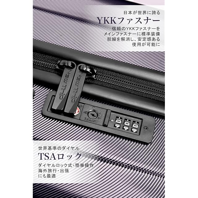【安心の日本ブランド&1年間】New Tripはあらゆるシーンで安心してご利用いただける日本のスーツケースブランドです。高品質にこだわり、アフターサービスにも対応しています。通常使用で1年以内に不具合が発生した場合、無料で修理また交換させていただきます。万が一、初期不良があった場合は迅速に新品交換させていただきます。