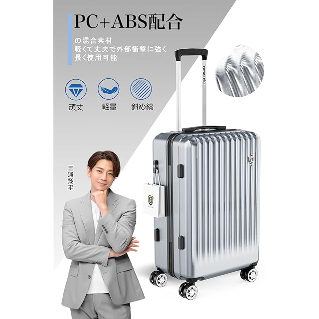 【高品質なボディ&信頼のYKKファスナー】ABS樹脂は軽くて弾力性と割れに強く、PC(ポリカーボネート)樹脂は耐衝撃性・断熱材に優れる、両素材を混合した耐久性が高いハードタイプの高品質ボディを実現しています。また、日本が世界に誇るYKKファスナーをメインファスナーに標準装備。ファスナータイプのスーツケースによくあるファスナーの不具合(ファスナー脱線や開き)を解消し、長期にわたり安定した使用感が可能となりました。