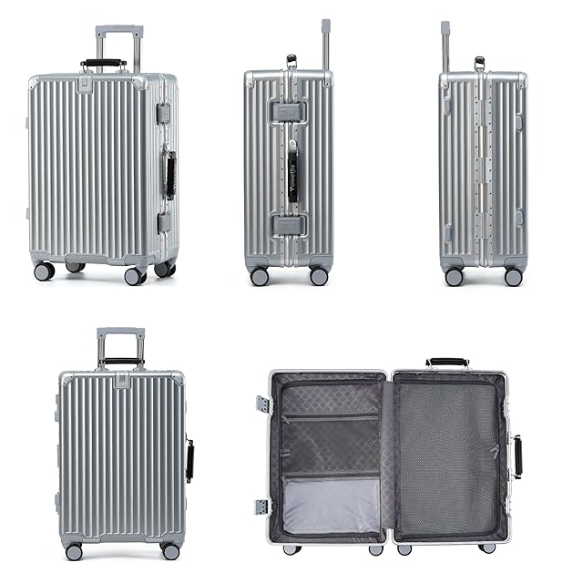 [Yuweijie] 新感覚!モダン!スーツケース キャリーケース 機内持ち込み 大型 軽量アルミフレーム式 キャリーバッグ 静音 ダブルキャスター TSAロック レトロ おしゃれなハンドル 疲れない設計 入学 海外旅行出張 XLサイズ シルバー 11泊 85L