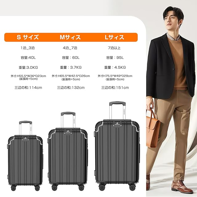 [Globetrek] 現役CA監修・日本企業企画 スーツケース キャリーケース 拡張機能付き 大容量 大型 耐衝撃 超軽量キャリーバッグ 360度回転 ストッパー付 静音 luggage suitcase 機内持ち込み 多機能 TSAロック 旅行 ビジネス 出張(ブラック,Mサイズ:4~7泊/60L)